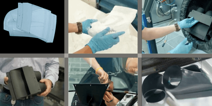 Il materiale utilizzato per la creazione di questa parte è il Nylon PA11, che va incontro a tutte le esigenze di Nascar: grande resistenza, ideale per i grandi volumi di produzione, precisione e ripetibilità (condizione indispensabile per Next Gen Car). Il sistema di additive manufacturing è Stratasys H350. Le parti, una volta stampate, sono state sottoposte a sabbiatura, colore e pallinatura con le stazioni di post processing DyeMansion e utilizzate per lo scopo finale.