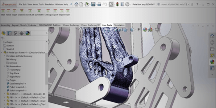 Componente modellato con ottimizzazione topologica Live Parts in SOLIDWORKS