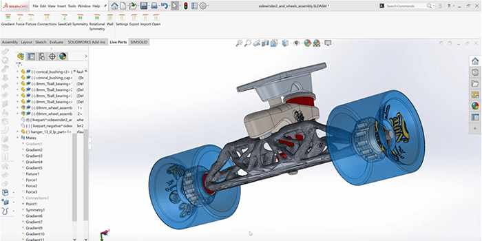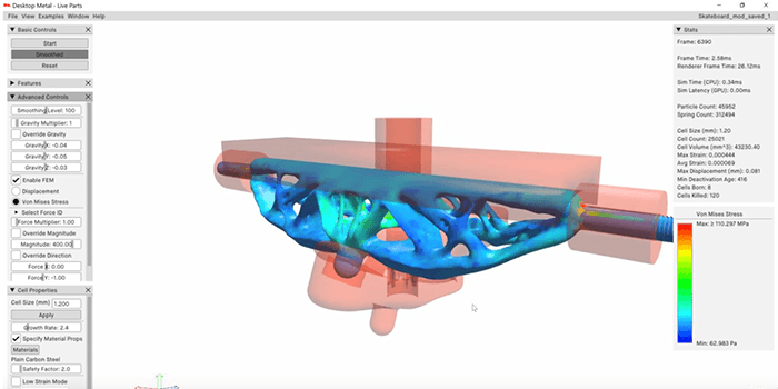 Sul fronte della stampa 3D metallo, Desktop Metal, l’azienda americana produttrice di stampanti 3D per metallo, già nel 2018 aveva presentato in anteprima un software sperimentale avanzato, Live Parts ™, disponibile esclusivamente per gli utenti di SOLIDWORKS, che offre un nuovo approccio alla progettazione in funzione della produzione additiva detto progettazione generativa.