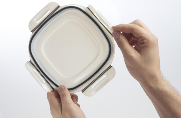 Prototipo di coperchio per contenitore stampa in 3D con materiale simil gomma Stratasys Agilus30 per stampanti 3D PolyJet