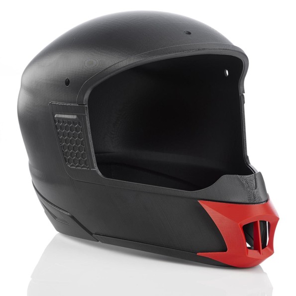 Prototipo di casco da moto stampato in 3d con materiale ABS su Stratasys F123