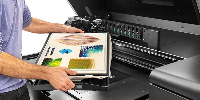 L’ultima novità introdotta da Stratasys per il segmento industriale riguarda la possibilità di stampare direttamente sui tessuti che vengono posizionati sul piano di stampa per essere decorati con motivi a colori o trasparenti grazie alla stampa 3D con resina.