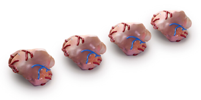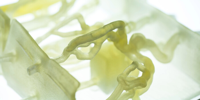 «Il massimo dell’espressione sono i materiali cardiaci: cuore e vasi sanguigni. La DAP consente una combinazione amplissima degli otto materiali che inseriamo in contemporanea nella macchina – prosegue Semplici – Il Gel Matrix è ciò che consente di creare l’interno cavo delle vene, in gergo chiamato lume. Una volta realizzato il modello, il gel viene asportato facilmente lasciando cava l’arteria o la vena, anche con 1 millimetro di spessore».