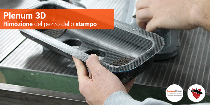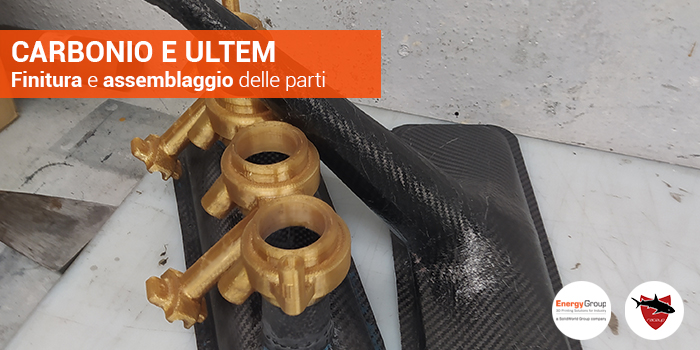 – prosegue Zeno Pogacnik – filamento idrosolubile resistente alle condizioni di cura del carbonio in autoclave sia in termini di temperature che pressione (121° a 1 bar e 98° a 6 bar). Per la stampa è stata utilizzata la stampante Stratasys Fortus 450 e il risultato è stato molto più che soddisfacente. La collaborazione con Energy Group, Due Pi Greco e Compositex ci ha permesso di individuare materiale e stampante 3D ideali per le nostre esigenze. In passato abbiamo avuto ottimi riscontri anche da altri materiali FDM: PEEK per sistemi di aspirazione e supporto iniettori, ULTEM 1010, materiale sempre di Stratasys, per le sedi degli iniettori e l’assieme di aspirazione. Di questo componente abbiamo stampato anche una versione in nylon caricato con fibre corte di carbonio (Nylon 12 Carbon Fiber). Abbiamo optato per questi materiali termoplastici, in particolare l’ULTEM, in quanto oltre ad essere resistenti alle temperature e agli idrocarburi hanno una straordinaria resistenza alle sollecitazioni meccaniche