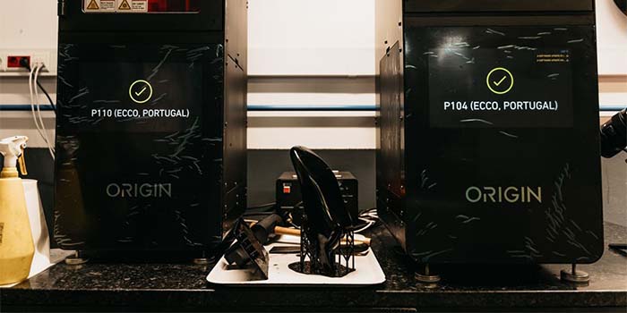 All’inizio del processo di valutazione, la qualità della superficie, la velocità di stampa, l’accuratezza e la capacità di stampare grandi sezioni di Origin One si sono distinte dalle soluzioni alternative testate da ECCO. Inoltre, Origin collabora con i principali partner di resina per sviluppare materiali di nuova generazione, anch’essi fondamentali per le esigenze di ECCO.